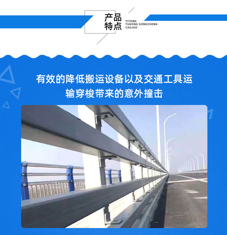 三、警示功能,安裝要使護欄上的輪廓簡潔明快,警示駕駛員要注意護欄的存在和注意行人和非機動車等,從而達到預防交通事故的發生。