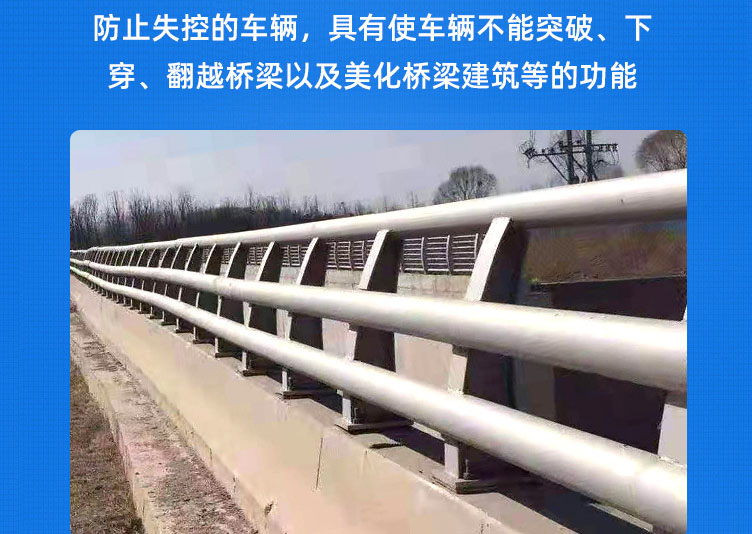 四、美觀功能,因為護欄的不同材質、不同形式、不同造型及不同顏色,達到與道路環境的融洽和協調,以此來達到美觀,起到保護的功能。